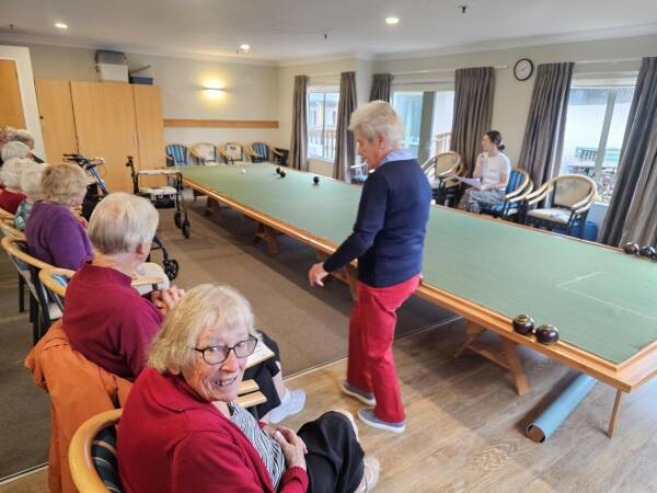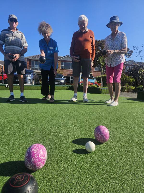 Enthusiastic Bowling for Brains participant, 97-year-old Rosemary Kuriger (who took up indoor bowls 50 years ago), loved sharing a laugh with her neighbours at Arvida Molly Ryan in New Plymouth.